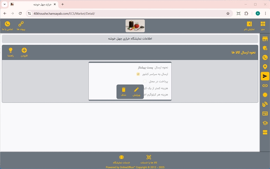 مدیریت نحوه ارسال کالاهای نمایشگاه در سایت همسایاب