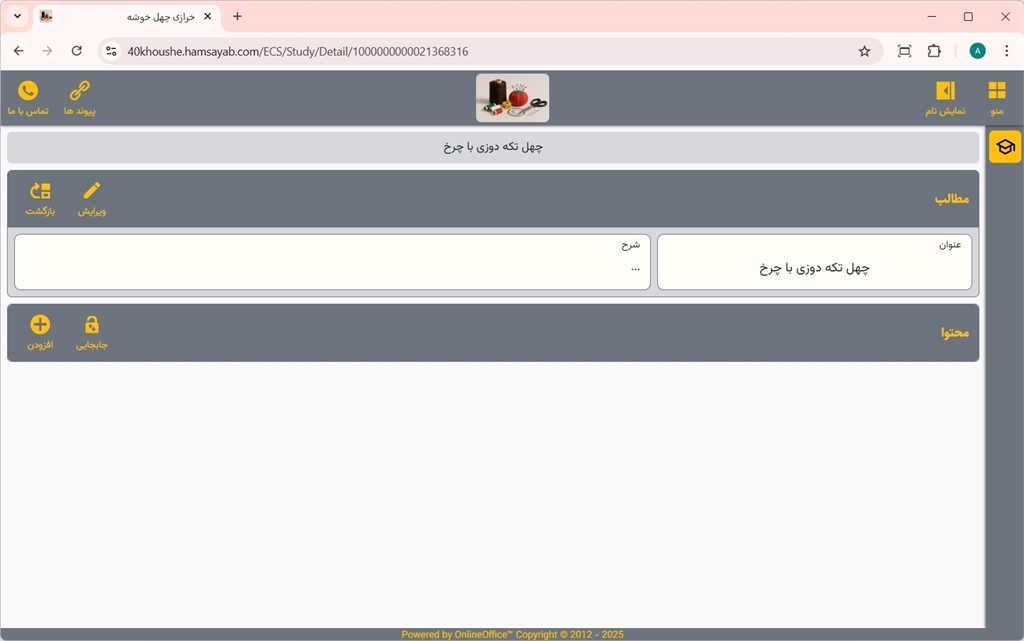 برای افزودن محتوا به مطالب آموزشی، بر روی دکمه افزودن کلیک نمایید.