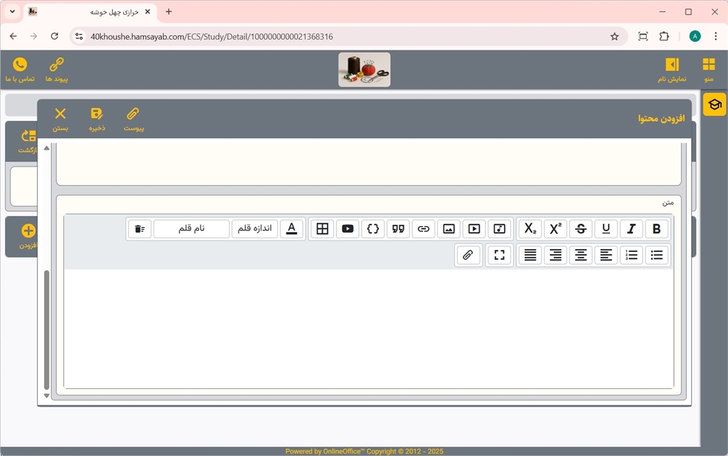 پس از ورود متن محتوای مطالب آموزشی، بر روی دکمه ذخیره و بستن کلیک نمایید.