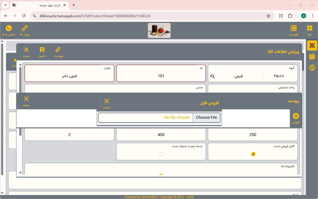 برای افزودن تصویر به کالا بر روی دکمه پیوست کلیک نمایید.