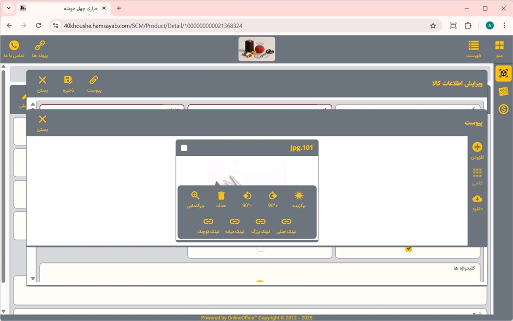 دکمه حذف: تصویر را پیوست کالا حذف مینماید.