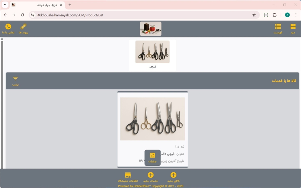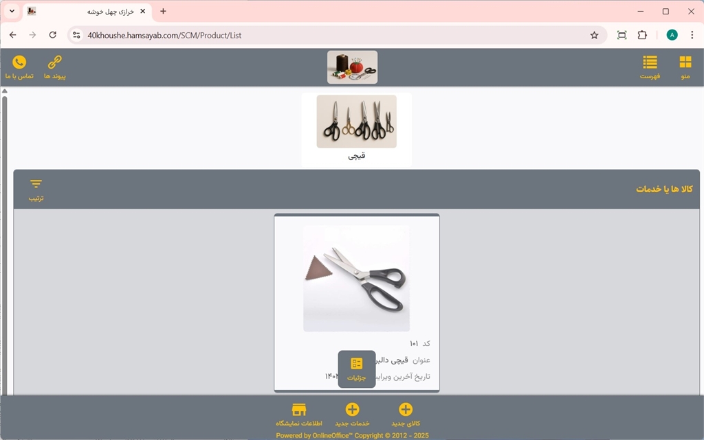 برای مشاهده کالاها یا افزودن کالا یا خدمات جدید بر روی دکمه فهرست کلیک نمایید.