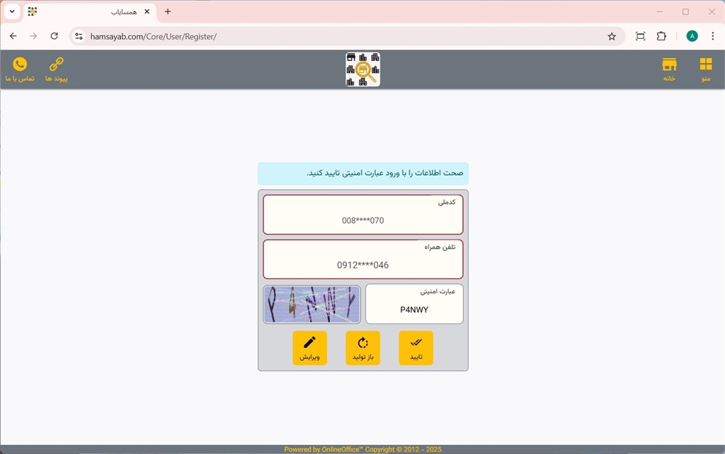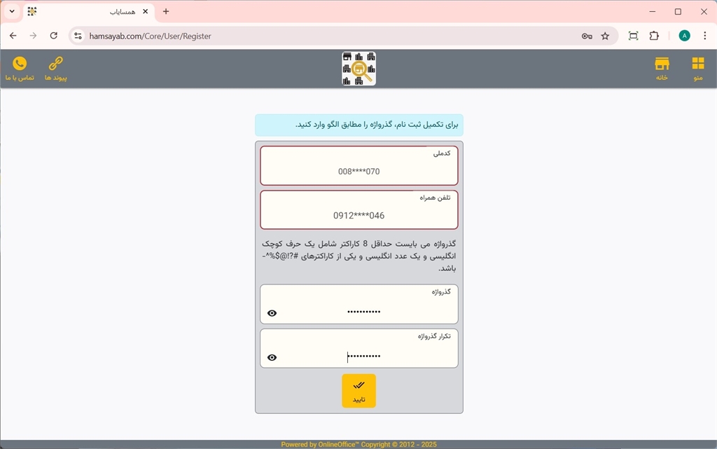 ثبت نام در سایت همسایاب