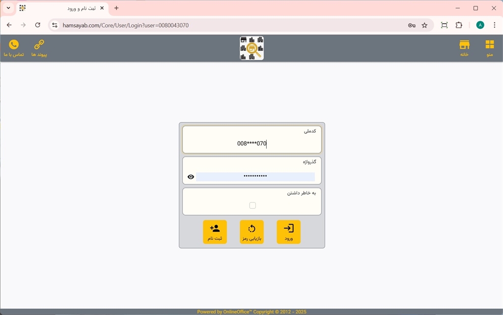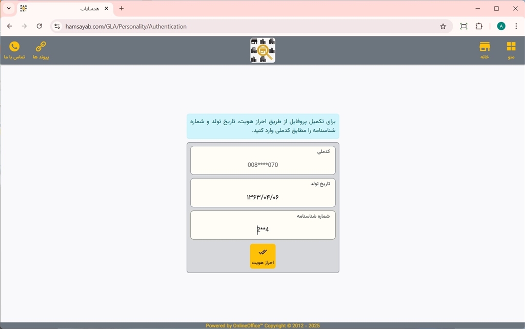 از طریق وارد کردن کدملی و گذرواژه وارد سایت همسایاب شوید.